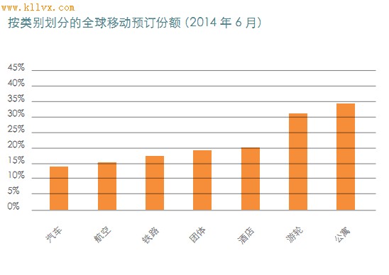 在酒店预订方面,通过智能手机和平板电脑产生的预订量占到了21%; P2P(个人对个人)房屋租赁是移动预订中占有率最高的类别(全球占到34%); 除住宿预订以外,旅游移动端预订额在各方面都有所增长。相比桌面端预订,移动端平均预订额在航空旅游和汽车租赁方面分别比前者高出21%和13%;而在酒店预订方面则低30%。