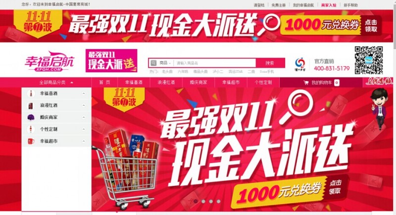 电商很给力,下个大奖砸向你! 记者了解到这号称“一站式办宴席”的“幸福启航宴席商城”,是由泸州老窖博大酒业创立的,但并非是单纯的购酒网站,它整合了宴席产业链,所有办宴席需要考虑的事宜,比如:宴席用酒、酒店、婚庆、婚纱摄影、蜜月、旅行等等,在网站上都一应俱全,更提供性价比高的合理配置、一条龙服务,为新婚燕尔省去不少麻烦! 登陆“幸福启航宴席商城”网址:www.xfqh.com可以看到,一款名为“最强双11”的活动正被热推,推出现金派送、超值秒杀送“美腿妻”、赠“过节大礼包”等促销,但更重要的是,只要购买“头曲”品牌的酒,都有机会获得下一波马尔代夫游的机会,你也可以拥有!