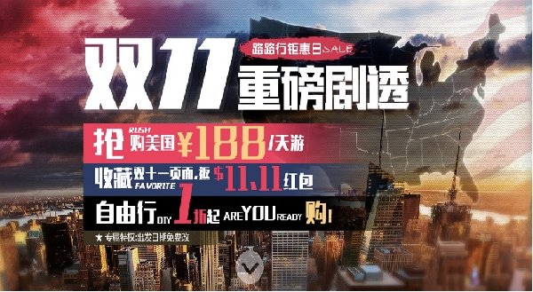 2009年至今,双11从光棍节演变成电商大促盛宴,今年双11是历年商家数目参与最多的一年,仅旅游平台就有上千商家参与此次活动。据路路行欧美自由行订购网的CEO江瀚悦透露,今年路路行更加全力迎接双11大战,推出了去美国一天只要¥188的最大力度的优惠活动,让去美国不再只是富人的标志,只要你敢想,每个人都可以实现美国之行的旅游梦。此外,在双11大促期间还将推出专享会员、双倍积分以及限时秒杀的各种优惠,更多出国省钱宝典和攻略立即扫路路行官方微信(lulutrip)可获得。
