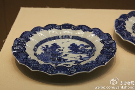 @忠老哥 微博达人:广东省博物馆外销瓷欣赏 清乾隆青花山水纹葵口盘