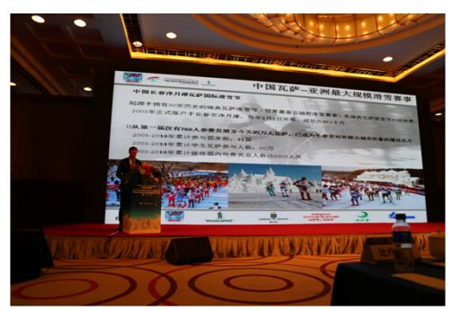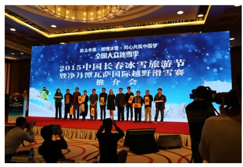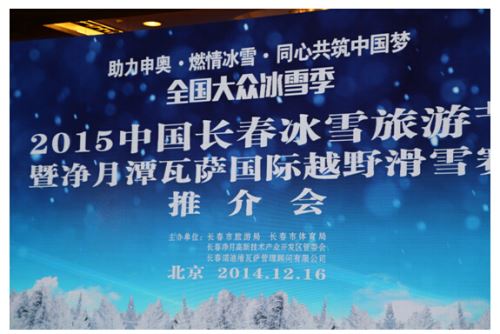 2015中国长春冰雪旅游节开幕前夕,为大力宣传长春冰雪旅游资源、推广长春瓦萨系列赛事,12月16日,长春市旅游局、长春市体育局、长春净月高新技术产业开发区管委会、长春诺迪维瓦萨管理顾问有限公司组织长春市相关旅游景区、旅行社和星级饭店,在北京国际饭店举办“2015中国长春冰雪旅游节暨净月潭瓦萨国际越野滑雪赛推介会”。此次活动邀请了北京市百家旅行社、百家在京主流新闻媒体、网络媒体记者参加。中国旅游协会、中国滑雪协会、北京市旅游发展委员会负责人和部分外国驻华使馆官员出席了会议。