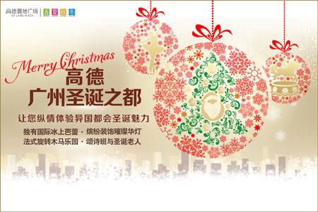 活动名称:高德·广州圣诞之都 活动时间:2014年11月下旬 活动地点:广州市天河区花城大道87号 高德置地广场 今年高德置地广场的圣诞装置西起春广场,东到冬广场,横跨珠江西路、珠江东路,成就珠江新城CBD面积最大的圣诞节日场地,给人们带来浓浓的圣诞节日气息。 为了迎合春夏、秋冬广场各自不同的品牌定位,今年高德置地广场在多样化的圣诞素材变化中,分别为春夏、秋冬广场两大区域定制了不同主题的色调和造型。消费者不仅可以在春夏广场感受经典版本红、绿、白三种颜色组合形成的自然温馨的圣诞气息,还可以到秋冬广场体验融合时尚浪漫色彩于一体金色高端版本的圣诞氛围。