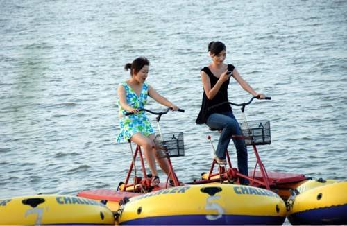 水面上的项目:拖曳伞、快艇、电动游船、脚踏船、皮筏艇。最近浴场内又增加了沙滩亲水竹廊供游客休闲品茗,海堤上还有观光车等。