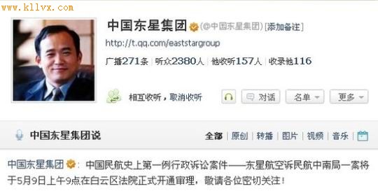 中国东星集团4月27日在微博上透露,集团对中国民用航空中南地区管理局(简称“民航中南管理局”)的行政诉讼案将于5月9日上午9点在广州市[注: 广州市是广东省的省会,是政治、经济、科技、教育和文化中心,中国南方最大的海滨城市,是全国著名的华侨之乡,也是全国华侨最多的大城市。]白云区[注: 白云区[广州市],白云区[贵州市]]法院正式开庭审理。 东星集团总裁助理兰剑敏向记者确认了这一消息,称已经获得了法院的开庭通知。 在经过一次推迟审理之后,这一中国民航史上第一例行政诉讼案终于确定了开庭时间。 2009年3月13日,当时陷入经营困境的东星航空拒绝了中国航空集团公司(简称“中航集团”)的重组要求,次日,民航中南管理局向东星发布停飞令。随后东星航空的数次重组努力均未能成功,最终于当年8月宣告破产清算。 东星集团认为正是民航中南管理局的不当行政执法,导致了东星航空的破产清算,以及东星集团的全面瘫痪。东星集团因此起诉民航中南管理局,请求法院判令停飞行政处罚无效,并已于今年2月24日获法院受理。 此后,由于民航中南管理局申请举证延期,此案被推迟审理。当时,东星集团代理律师严义明认为,行政单位作出行政处罚决定应当是依照法律程序查明事实,搜集了足够的证据之后才对被处罚机构进行行政处罚行为,因此不应该在诉讼时,出现需要延期举证的情况。 2010年4月,东星航空实际控制人兰世立因逃避追缴所欠税款,被判处四年刑期。今年年初,网上传出一份兰世立的“狱中绝笔信”,引起了媒体新一轮报道和网上的热议,也令这一行政诉讼案件备受关注。(文/刘中盛) |