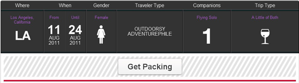 时间:2011-8-15 9:37:58 来源:环球旅讯 维珍美国航空公司(简称维珍航空)曾经与Google合作,开展过一个乘客在航行中使用测试Chromebook的活动。如今,维珍航空延续两者的合作关系,继续推出了一个“Virgin America Traveler”的Chrome应用。 在这个应用当中,有两个最基本的功能:Packing Lists和Trip Boards。 在Packing Lists当中,你可以选择到哪里去(洛杉矶[注: 洛杉矶始建于1781年9月4日,坐落在美国西海岸加利福尼亚州南部,是仅次于纽约的美国第2大城市。濒临浩瀚的太平洋东侧的圣佩德罗湾和圣莫尼卡湾沿岸,]、纽约[注: 美国第一大城市和第一大港口,是美国工业、金融和经济的中心,位于哈得孙河注入大西洋的河口处,从地理上看,纽约由曼哈顿岛(Manhattan Island)、]、旧金山[注: 金山[演员],金山[教师],金山[山名]]、芝加哥和其他地方)、什么时候去、性别、出行者风格(奢华之旅、户外冒险、踏青)、和谁去、出行目的(娱乐、商务、两者皆有)。在进行了选择之后,点击“Get Packing”,应用就会给出出行打包建议,出行建议主要包括三方面:要做的事、衣服和小物品、装备。除了它推荐的,你可以增加自定义选项。 在Trip Boards当中,你可以创建自己的出行版,在应用给出的旅行建议当中,会有三方面的内容:旅行环境(浪漫、美食、奢华等等)、一定要做(游泳、购物、音乐等等)、一定要看(时尚、自然、节日等等)。在进行选择之后,点击“Inspire Me”,就可以获得出行建议,和Packing Lists一样,你同样可以自定义添加自己喜欢的东西。