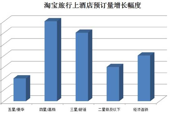 淘宝旅行上酒店预订量增长幅度 淘宝旅行负责人吹雪表示,6月9日欧洲杯开幕式以后的酒店预订量,以北京、上海、广州、深圳、杭州、成都等城市酒店的预订量上升最快。其中以三星级和四星级的酒店最受欢迎。 |