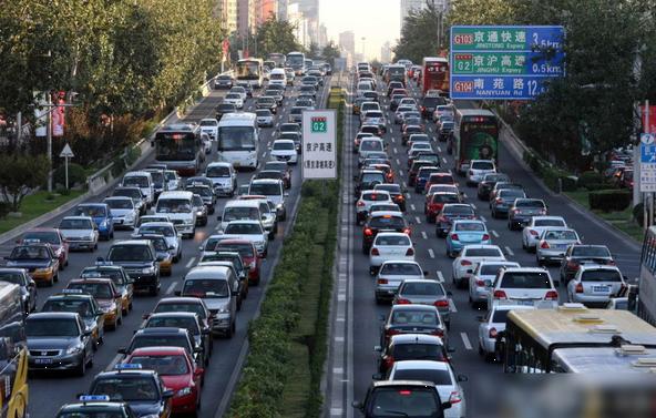 图:9月30日,北京城区高速公路车行十分缓慢