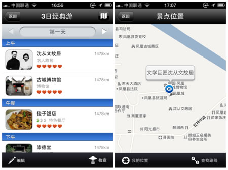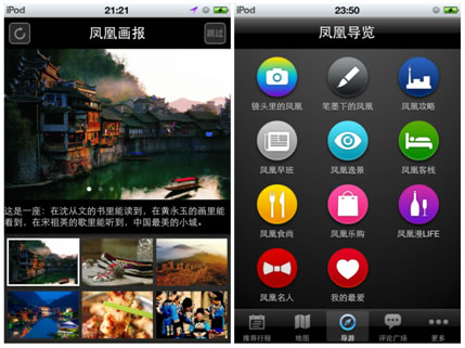 时间:2012-10-25 15:58:15 来源:kllv 2012年9月25日,在十一黄金周之前,天下凤凰文化旅游集团与TouchChina联合推出凤凰古城、张家界、洪江古商城等三款智能手机导游软件,为游客出行带来更为方便、快捷的智能旅行体验。 免费下载 贴身导游 据了解,十一前后,游客均可以通过苹果App Store软件商店、安卓各大软件市场搜索“凤凰古城”、“张家界”、“洪江古商城”免费下载三款导览软件,从中了解三个热门景区景点的最新资讯、交通路线、住宿饮食、旅行攻略、民风习俗、摄影技巧等多项内容。 如在《凤凰古城-TouchChina》导游软件“凤凰逸景”中查看的“沈从文故居”,用户可以马上看到该景点的介绍、票务信息、开放时间、交通信息等详实的旅游攻略,为游客的游览提供贴心、便利的服务。此外,游客还可以很方便地通过手机地图进行定位,对景点的各项服务做出评价,通过新浪微博、腾讯微博进行内容分享,具备很强的互动效果,满足个性出游、休闲出游的消费热点。