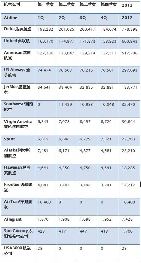 根据美国交通运输统计局的统计,达美航空在托运行李和预订变更费用部分的辅助收入,已连续第三年击败所有美国的其他航空公司。所有已申报的美国的航空公司在此方面的总收入为60亿美元,其中达美航空的收入超过16亿美元。 达美航空所占的份额费用与其在美国乘客运载量所占的份额相当,它比任何其他美国航空公司在2012年运载更多的乘客。但是,占据第二位的航空公司是西南航空,但该航空公司在托运行李和预订变更费用部分的表现显得靠后许多,排名分别为第七名和第六名。前四名分别为美联航、美国航空和全美航空。 然而,名单上真正展现积极态度的非Spirit廉价航空公司莫属,尽管该航空公司在乘客运载量上没有跻身前10名,但该航空公司在托运行李和预订变更费用部分的表现分别位居第五名和第八名。 除非有其他家航空公司能在2013年想出一个新的收费类别- 我们可以确认的是Spirit航空以及达美航空将在2013年仍然保持领先的地位,直到2014年新的美国航空公司与全美航空公司完成合并后,其席次将很有可能不保。 整体而言,托运行李费用在2012年同比增长超过3.5%,预订变更费用同比增长7.5%。 2012年全年所有客运航空公司的总收入为1,595亿美元,2012年所有的美国客运航空公司收取了35亿美元的托运行李费用和26亿美元的预订变更费用。根据美国交通运输统计局的统计,辅助收入得以使航空公司在去年未出现亏损,其表示“2012年全年10家最大的航空公司所申报的净收入为2.01亿美元,同比呈现增长趋势(2011年同期为50万美元的损失) ”。 2012年托运行李费用收入(金额单位为美金千元) 2012年预订变更费用收入(金额单位为千元美金) 注:西南和AirTran合并后于 2012年第二季度开始整合财务报告。此之前的数字,包括2012年第一季度为各自单独报告。 Skift 观点 由于机票价格被压的越来越低,辅助收入的费用已成为美国所有航空公司在产生获益或损失的重要因素,但仅有少数的航空公司真的能实际产生差异。 |