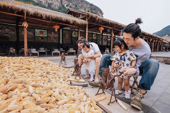 在乡土风情体验区,体验多姿多彩的玉米农事活动,喂喂小毛驴儿,制作玫瑰花饼…种种亲子小互动都值得一家人参与。