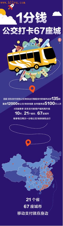 随着抖音、各类Vlog带火一众网红城市,每逢节假日各路驴友纷纷开启奔赴网红地的节奏。为了节省预算开支,在各大城市打卡时驴友们更愿意选择乘坐当地公共交通出行,既便宜又方便,各大网红点基本都能到达。但是也有各种尴尬,如没有零钱,办理当地公交卡不方便等,但是现在不用担心了,参加京东支付“1分钱乘公交”活动,只需一部手机,每次一分钱,就能打卡21个省,67座城市。 穷游出行必省费用:1分钱也能出行 1分钱能做什么?1分钱掉到地上都没有人捡。但是,现在1分钱却可以让你坐上公交/地铁,绕着城市环路兜一圈。 据了解,4月份京东支付在天津、大连、厦门、唐山等67个热门城市开展1分钱乘公交的活动,南昌、南京作为优惠上新城市,更是受到一众市民热捧。同时,京东支付新用户福利升级,自开通起10天一分钱乘车,每天每人限两次。驴友们可以在21个省67座城市体验1分钱乘车。