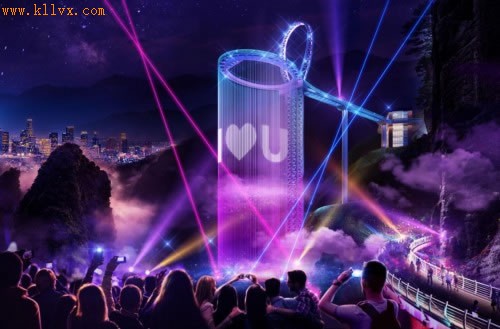 除此以外,黄腾峡天门悬廊还有一个全世界独具特色的创意,设计团队在500米高空的环形悬廊上安装了音乐灯光水瀑系统,形成了总周长达168米的世界最大的环形音乐瀑布,白天游客可以感受峡谷中“飞流直下三千尺”的震撼美感,夜幕降临后环形音乐瀑布的灯光开启,天门悬廊将变成清远夜空中最亮的星,2000多只炫丽灯具的动态表演汇成了精彩的灯光盛宴,完全媲美夜色中的“小蛮腰”。