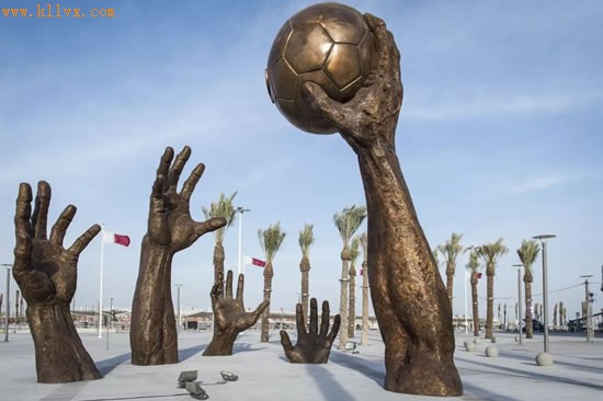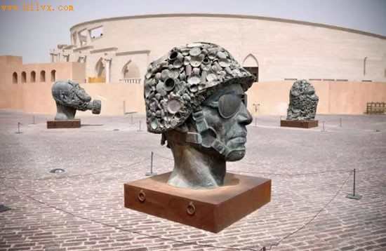 坐落于多哈的卡塔拉文化村中,这些雕像无疑吸引着人们的眼球。在诉说着战争与和平的大胆主题映衬下,它们显得尤为引人注目。这是一组由艺术家Gupta创作的头戴军用装备的三座雕塑。一个戴着防毒面具,一个戴着士兵头盔,另外一个戴着蒙面头巾。每件作品均由烹饪器具、使用过的桶、传统印度午餐盒以及玻璃碗组成。三座雕像纪念着甘地著名的视觉隐喻,即“不见恶、不听恶、不言恶”的谚语。 卢赛尔手球雕塑Lusail Handball Installation