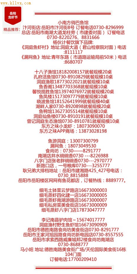 龙虾节期间,店铺经常爆满,小编整理了一些道地美食老店,订餐方式与就餐规模附录如下。
