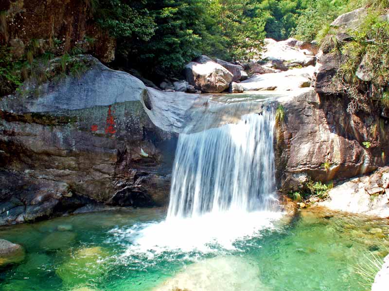 翡翠谷景区在黄山的东部,又称“情人谷”,谷中之水源出炼丹峰、始信峰,游人可至的景区有6000米长,峡谷中分布着大小彩池数百个,有40余个彩池的面积超过100平方米,最大的彩池面积近1000平方米。