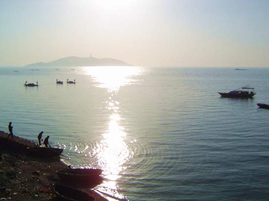 与中庙遥遥相望的是茫茫湖面上的一座湖岛,远望犹如一只巨大的海龟,漂浮在白浪滔滔的湖面上;近观,好似老妇托腮凝神望子,这就是充满神话色彩的姥山。 传说很久以前,巢湖是个盆地,盆地中有一座城池叫巢州。某一天,一位渔人捕捉了一条千斤大鱼,运到城内廉价出售。全城人争相购买食鱼肉,唯独一老妇焦姥和女儿玉姑不食。一叟者过闾对焦姥说:“此鱼系吾儿,汝母女不食,必有厚报。见城东石鱼目赤,城将陷。”果然不久的一天,焦姥见东门石鱼目赤