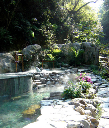 汤池温泉具有涌量稳定,水温稳定,化学成份稳定三大特点。水温63度-37度,日出水量为5387立方米。可开采年限在60-121年。含有多种对人体有益的微量元素。生态旅游。度假区处于半原始状态的生态环境,区内生物资源丰富。植物种类达1000余种,且不乏珍贵名木,如银杏、金钱松、海棠、山茶等,古老的果树街有一棵500余年的山茶花