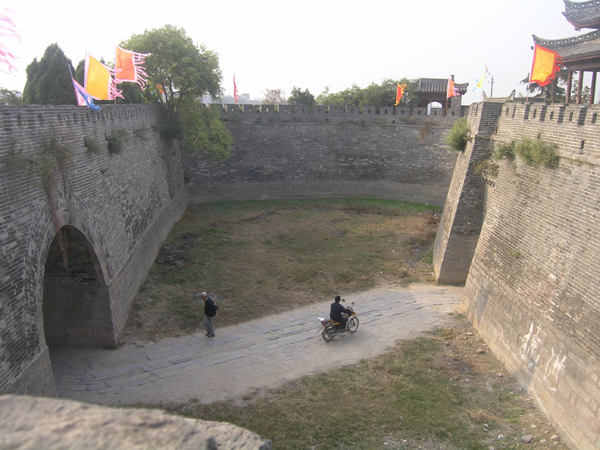 作为古老历史的见证,寿州人非常珍爱至今保存完奸的城墙。城墙为宋代重筑,尔后迭有修茸。城墙周长7174米,高为9.7米,底宽18—20米,顶宽6— 10米。城有四门,并各有瓮城,其中西瓮门北向出,北瓮门西向出,东城门与瓮门在平面上平行错置同为东向出。这种门向的特殊设