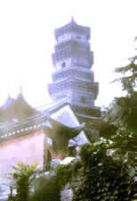 赭塔依山拥寺,气势雄伟:四周茂林修竹,芳草萋萋,“每当雨后,岚光飘缈
