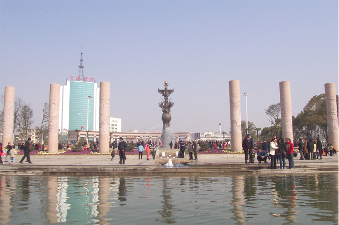 广场整体上为北高南低、西高东低,强调其向水性和向阳性。人们既可以在这里听音乐会,又可以在林间小憩、水中嬉戏,还可以在地下商场购物,了解芜湖的人文历史、广场与大、小镜湖、中山路步行街一起,组成了一个集观光、休闲、购物、