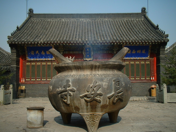 沿寺庙步步登高游,跑大道强健体魄游,访“石刻”寻幽探险游、观印章林间吸氧游。登山族可根据自己的身体状况,选择不同登山线路,达到登山健身的目的,各种设计新新颖、内容丰富的健身牌示,指导您如何科学登山。为满足游客的不同需求,八大处公园在登山沿途安装了健身器材百余件,占地面积近4000平方米,免费供游人使用。另外还建设了两块用鹅卵石铺成的健身步道及网球场、羽毛球场等等。北京奥组委已将公园八处附近确定为2008年奥运会山地车训练场地,将于今年进行规划建设。今后八大处公园体育健身的功能将日益明显。 一处长安寺 长安寺西倚翠微山,坐西朝东,红墙围绕,两进四合。入门便是一砖石景壁,上有"登欢喜地"四字。沿西向甬路前行,登数十级台阶为该寺山门殿。殿内供关羽造像,又称"关公殿"。向后分别为"大雄宝殿"、"大士殿",布局严整时称。其中大士殿前二株白皮树尤为醒目,虽历数百年沧桑却仍枝繁