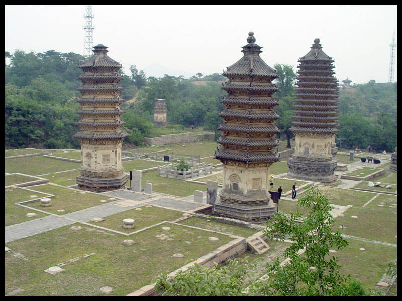 其中,密檐式砖塔共计有7座。其整体形象分别由“须弥座”式的塔基,雕刻有门窗、佛像的塔身,层层密檐和塔刹等部分组成。外轮廓线条挺拔秀丽,砖雕精美细腻,是研究古代建筑美学及佛教文化的绝好资料。 景区有前、中、后三座主峰,中峰“独出云霄”最高,海拔达700多米。景区特点是山美、树美、塔多。山美源于漫山遍野的松、柏、橡树,颜色也随着树种的变化而呈现深绿、浅绿等不同色彩。