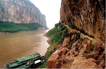 长江流经四川盆地东缘时冲开崇山峻岭,夺路奔流形成了壮丽雄奇、举世无双的风景旅游大峡谷——长江三峡风景区。 长江三峡风景区是瞿塘峡、巫峡和西陵峡三段峡谷的总称。它西起奉节的白帝城,东到宜昌市南津关,全长192公里,也就是常说的“大三峡”。 长江三峡,各具特色,各显奇妙:瞿塘峡雄,巫峡秀,西陵险,共同构成了一幅壮观瑰丽的画卷。 瞿塘峡山势雄峻,两岸之山,上悬下陡,如斧削而成,有的峰高1500公尺。夹江峭壁,甚为逼仄,致使江宽不过百米,最窄处仅几十米。其中夔门山势尤为雄奇,堪称天下雄关,因而有“夔门天下雄”五字镌于崖