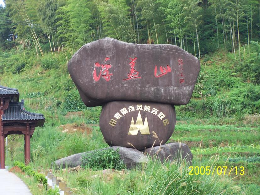 浮盖山又名盖仙山,位于浦城县盘亭乡柳墩村东面,面积10平方公里,主峰海拔1146米。它犹如一条尾摆西北、首向东南的巨龙,雄踞在闽浙赣三省边境。明朝旅行家徐霞客五次入闽,曾两次遍游山中诸景,并在山中大云寺写下了《游浮盖山记》,盛赞浮盖山“石痕竹影,娟然可爱。峰恋环列,此真独胜”。