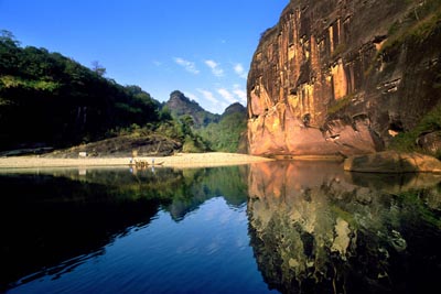 闽中山水奇秀以武夷山为第一,武夷之魂在九曲溪。这条发源于武夷山脉主峰──黄岗山西南麓的溪流,澄澈清莹,经星村镇由西向东穿过武夷山风景区,盈盈一水,折为九曲,因此得名。