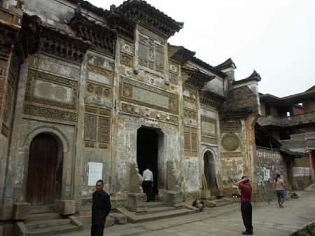 下梅民居建筑结构以砖木为主,石砌墙基,柱础以木为主,利用挑梁减柱,扩大屋宇建筑空间,屋内一般为二厅三进或三厅四进,东阁西厢,书屋楼台一应俱全。结合精巧的闺楼、书阁、花园、经堂、厢房是下梅古民居的重要组成部分,形成了下梅民居的独特风格。为了采光、集雨、通风,各民居都设置了四方天井,一重天井一重厅,体现了中国古代天人合一的哲学思想。天井下一般都摆设长条石花架,供户主养花、赏花。 下梅民居外部结构以高大的风火墙为主,体现村民封闭、保安的意识。风火墙上多绘有二方连续彩画,意蕴高雅。这些彩画至今仍绚丽清晰,经数百年风吹日晒而不褪色,令人不禁为古匠人的高超技艺和优质颜料叹服不已。各民居的排水设施以地下涵沟为主,户户相连相通。民居布局错落有致,里弄纵横,巷道曲折,铺以河卵石路面,古朴雅洁。 武文 化 民 村 或許是時尚,現代人不約而同地將懷舊的觸角伸到