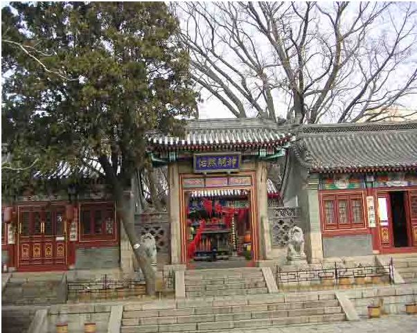 殿顶筑九脊重檐四面落水的歇山式,正脊是天后殿至高点,两端五彩瓷型双龙戏珠,造型精美,光泽鲜艳,表现整个大脊龙的至高题材,四岔脊头组合凤凰图案,对应大脊成龙凤呈祥,背面作人物故事,配以龙凤、麒麟,玄武、双虎、体现了吉祥如意,庆贺长寿的象征,为闽南建筑艺术之一绝。