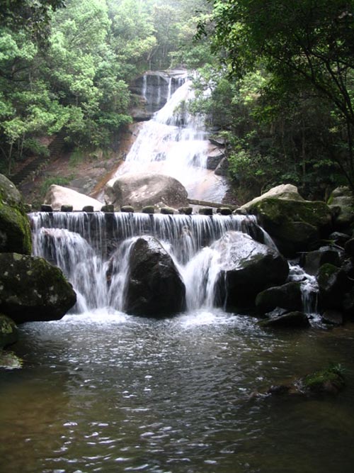 风景区的景点以瀑布、奇石、洞穴为特点。景区内分为中路、左路、右路三条旅游路线。从右路出发沿山涧拾级而上是十几级大小不等的瀑布,最引人入胜的有*瀑布。第一级瀑布为玉龙潭瀑布,泉流在巨石夹缝中冲泻而下如玉龙入潭。此级瀑布秀美如玉桂琼花,潭水漫流温文尔雅,潭周竹树荫浓,藤挂蔓拂。第二级瀑布为鸳鸯瀑布,全程50多米长、10多米宽,斜度为45度,潭水从瀑顶岩面均匀漫下,如一幅白色的飘绸铺泻而下,高速而下的水流碰撞在凹凸不平的崖面上如碎玉摧冰、散霁飞雪,气势磅礴,瀑落入潭,潭方近200平方米,是一座天然的游泳池。第*瀑布是老虎跳瀑布,位于天门峰和老虎岩峰的山肩处,瀑布的上半部由两条山溪汇合,瀑布高2
