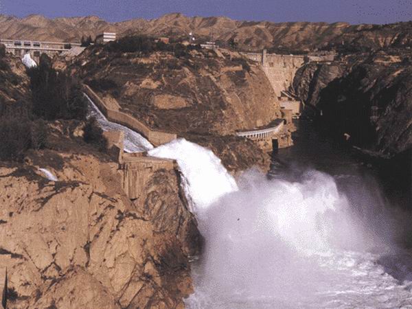 刘家峡水库蓄水容量达57亿立方米,水域面积达130多平方公里,呈西南-东北向延伸,达54公里。拦河大坝高达147米,长840米,大坝下方是发电站厂房,在地下大厅排列着5台大型发电机组,总装机容量为122.5万瓦,达到年发电57亿度的规模。刘家峡水电站把陕西、甘肃、青海三省的电网联结在一起。 <