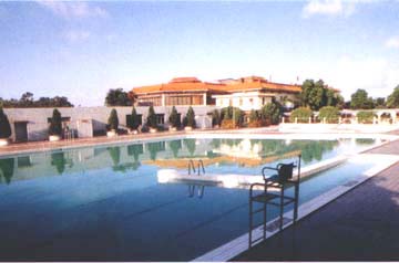 高层酒店,共有客房450间,分别坐落在花木丛中。碧池含荷,亭立桥曲,棕椰摇曳,环境十分幽雅。