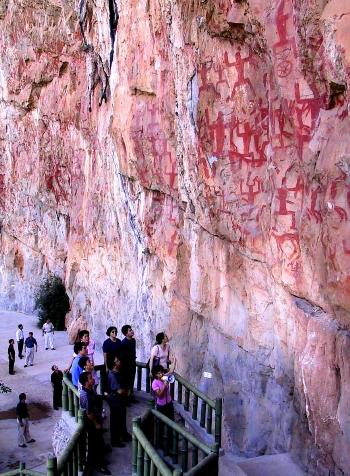 壮族先民绘制这个大型的崖壁画用意是什幺?一些专家学者经过实地考察后, 有的说是祝捷庆功,有的说是欢庆丰收,还有的说是操练或出猎什么的,说法不一。总之,目前仍是个迷。