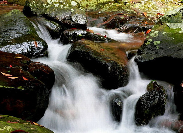 步入槽林深处,空气清幽。峡回谷转,颇有“山重水复疑无路,柳暗花明又一村”之感。槽中清泉涌溢,常年碧溪水流。其中的“天槽飞瀑”、“霞映珠帘”、“别具洞天”、“屏画凌空”、“奇石隐溪”、“七彩清溪石上流,水花欢跳乐悠悠,因时变幻多奇景,丽色堪超九寨沟”。