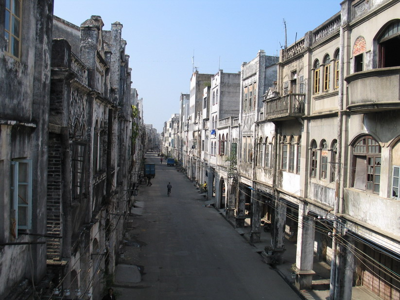 程中,广府商人立下了汗马功劳。他们不仅带来了大量的资金,开创了北海的商业繁荣,而且带来了广东地区的传统建筑形式。这可以从至今尚存的,几科与大兴街同时期形成的民建一街(1870年左右)所留存的旧式中国南方传统建筑中得到印证。其建筑形式与今天广州旧城区西关的老里弄“毫无二致”。这些商铺,多为土瓦、木门面、墙头出挑、凹阳台、卷棚,有的门头或楹额画花描草、缀以木雕等,具有浓厚的民族特色。