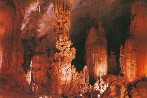 织金洞是中国目前发现的一座规模宏伟,造型奇特的洞穴资源宝库。洞深10余千米,两壁最宽处173米,最高达50米。织金洞已勘察长12.1公里。洞腔最宽跨度175米,相对高差150米,一般高宽均在60-100米之间、洞内总面积70万平方米。织金洞划分为11个大厅47个厅堂,呈现出万千气象,无限风光:“地下塔林”,“铁山云雾”,“寂静群山”,“百尺垂帘”,“广寒宫”,“灵霄殿”“银雨树”,“卷曲石”,“普贤骑象”,“婆媳情深”……一幅幅大画卷,一处处小情景,令人心魄震惊,叹为观止。