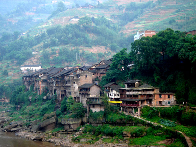 ![]() 脚踩着这条带有青苔的石板街,眼看着不见油漆印迹的木板墙,阳光从两边瓦屋滴水檐之间撒下来,像一张张发黄的老照片,这里的旧屋、旧瓦、旧墙飞檐中,都透着历史的沧桑。 沿着这条旧石板路走下去,你就会走到过去,走到遥远的明朝清代。 丙安正是从明清时代走过来的。相传丙安原为“炳滩”,后因是常发生火灾,人们认为可能与“炳”字从“火”有关,于是改“火”为“水”,此后果真少有火灾。汉字规范后便改为“丙”。“滩”究竟是因河滩而得名,还是因场市而为“滩”无从考证。1962年建人民公社时,就改叫“丙安”了。据说是为铭记治理赤水河,使大、小险滩恶水变为平安之水的功绩而取的。 丙安历来为川南入黔的古道上一重要场镇。从明清时代起一直为上下客商歇息之地,因而丙安场上客栈、饭店、茶馆比比皆是,镇上多数居民以此为业。外来商贾也相继在场上开店,湖南、湖北人还在此修建禹王宫,即两湖会馆。自清乾隆年间赤水河