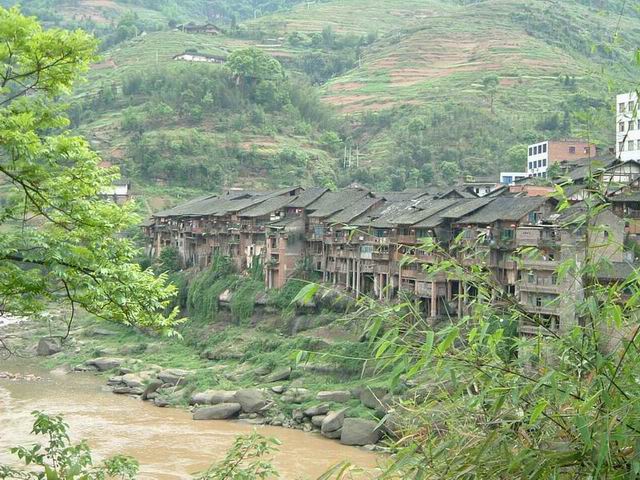 铁匠铺也随着商船的远去衰败下来。今天紧贴公路边仍有一家,风箱已不用人拉了,打铁的汉子赤着胳膊挥汗如雨,打的不再只是船上用的小铁具,只在叮叮当当的声音中,还依稀留有老辈人讲的那份热闹,仍能翻动古镇已远去的繁荣。 镇上老屋的木墙上,还留有60年代中期最流行火爆的*口号,大红色油漆刷写的标准宋体字与对面保存完好的祠堂大门上精美的石刻面对面望着,这些都是小镇的历史故事。还有一些故事是关于梢公和船娘的。弄船者日出暮归,迎来送往的船娘在橹上系一块红绸,既是风俗也表情愫,怪不得码头上方半山腰间有一株古老的黄桷树,只有根扎在半山腰,整个树干完全横卧在空中,探出身子俯望着赤水河。讲故事的人说这株老树从长出来就是今天看到的样子。也许这株老树把小镇昨日的浪漫情怀与现在的怀旧伤感交融在一起了。 时间已是黄昏,天气渐凉,石板街的老屋前放着一张竹床板,不满周岁的小儿和母亲在竹床上嬉戏,年轻的父亲和邻晨坐在一边悠