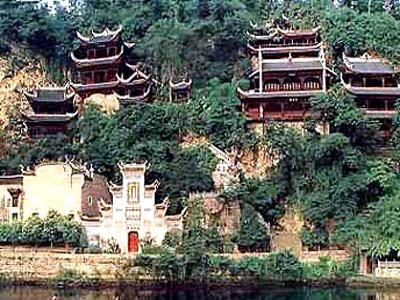 镇远青龙洞古建筑群位于镇远县东郊,由青龙洞、紫阳书院 、中元禅院、万寿宫、祝圣桥、 莲花亭六部分组成。“入黔第一洞天”,这是刻于镇远青龙洞内的一句题辞。如果说镇远是一个文化旋涡的话,青龙洞就是这个旋涡的中心,把多种文化凝在青龙洞上,成为镇远文化的缩影。