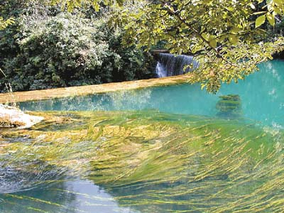 小七孔风景区以精巧、秀美、古朴、幽静著称,景区移步换景,布局紧凑。有著名的七孔古桥、68级响水河瀑布、拉雅瀑布、龟背山原始森林、野猪林漏斗森林、天钟洞、卧龙河生态长廊等景点,更有掩映在森林之中的鸳鸯湖。鸳鸯湖秒大小两个天然湖泊相连而成,大小湖这间有长约700米的“水上林荫”,两岸秀木枝蔓成棚。湖区浓荫四匝,水鸟相呼,境界幽绝。置身其间, 有如仙境。