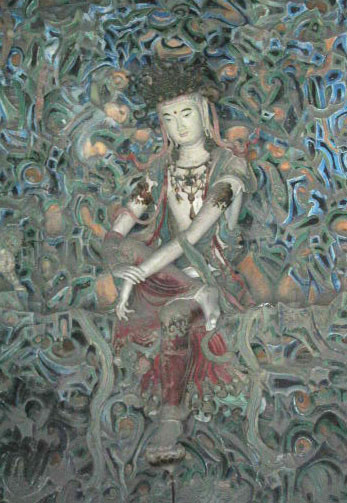 形。殿内的粱架结构均与宋《营造法式》相符,大木八架椽屋,前後乳栿四柱结构形式。正中殿身五间,进深五间。中央部分为重檐歇山顶,四面正中各出山花向前抱厦,体现了宋代建筑的特点和见格,殿顶为绿琉璃瓦剪边、檐下饰雄大的绿色斗拱,翼角弧度圆润而微微向上翘起。大殿雄伟壮观,又不失矫健优美。殿脊、飞檐曲线如波,自然流畅;四角微翘,如鸟振翅欲飞。像这样立体礼富淤变化,形制颇为特殊的古建筑,在我国早期古建筑中实属罕见。 殿内正中佛坛上,塑有释迦牟尼、文殊、普贤、阿难、迦叶像,其中一佛(释迦牟尼)、二弟子(阿难、迦叶)像为宋代原塑。檐墙及围绕佛坛的扇面墙上,均绘有明代成化年间绘制的壁画,题材内容为佛传故事。壁画色彩艳丽,线条流畅。扇面墙背面塑有玲珑别致的须弥山,山间塑有罗汉、狮、象等,中部有一尊明代彩塑观音坐像,头戴宝冠,肩披璎珞飘带,胸臂*圆润,一足踏莲,一足踞起,双手抚膝。鼻梁微高,柳叶细眉,面容恬静页码:[1] [2] [3] [4] [5] [6] [7] [8] [9] 第4页、共9页