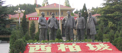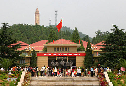 西柏坡中共中央旧址,坐落在位于太行山中的平山县,距省会石家庄80公里。西柏坡,原是一个普通的小山村,有100多户人家,群山环绕,滹沱河擦村而过,两岸滩地肥沃,稻麦两熟。据史书记载,西柏坡原名“柏卜”,始建于唐代,因村后坡岭上翠