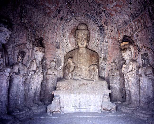 龙门石窟与甘肃敦煌莫高窟、山西大同云冈石窟并称为“中国三大石刻艺术宝库”。石窟始凿于北魏孝文帝时(公元471~477年),历经400余年才建成,迄今已有1500年的历史,龙门石窟南北长约1公里,现存石窟1300多个,窟龛2345个,题记和碑刻3600余品,佛塔50余座,佛像97000余尊。其中以宾阳中洞、奉先寺和古阳洞最具有代表性。 魏窟——公元495年魏宗室丘慧成开始在龙门山开凿古阳洞,500--523年魏宣武帝、魏孝明帝连续开凿宾阳洞的北中南三个大石窟,石阳洞和宾阳洞的修建共费人工80万以上,还开凿了药方洞和东魏时开凿的莲花洞等石窟。北朝石窟都在龙门山,古阳洞自慧成