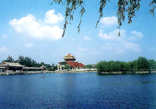 龙亭雄居于开封城北,是一座建在高达13米巨大砖砌台基上的丹碧辉煌的大殿,远远望去,气势峥嵘,犹如天上宫阙。 龙亭所在原为北宋和金故宫遗址,明代在此修建了周王府,清康熙三十一年在周王府煤山旧址修筑一座万寿亭,作为地方官吏节日朝贺之处,也称龙亭。雍正十二年又把万寿亭扩建为规模宏大的万寿宫,以后又一度改为道教的万寿观。现存龙亭大殿为清代建筑。