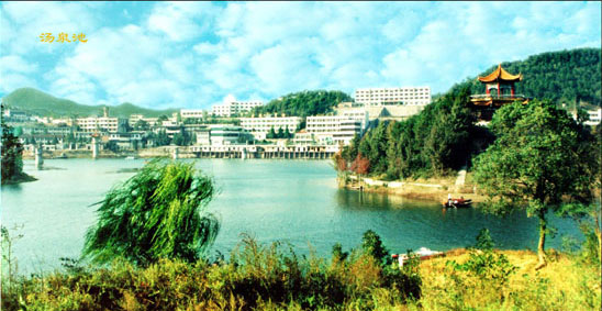 汤泉池风景区是河南省著名的温泉疗养和山岳风景区.它位于河南省商城县西南15公里处里处的鲢鱼山水库上游西岸,大别山腹地金刚台脚下,以温泉水的医疗效果而闻名。地理坐标为东经115°18—22′,北纬31°40—43 '。辖区东西宽5公里,南北长6公里,总面积30平方公里,大约呈倒三角形。 汤泉池是以温泉命名而又因温泉的医疗价值而闻名。温泉大约形成于一亿年以前,现有三个泉眼,日出水量650吨,水质清亮洁净,水温56°C-58°C,泉水经光线谱定量分析,水中含锶、银、钛、硼、铬、铜、铅、钙、钠、镁、钾、氟等元素,按医疗矿泉分类属于淡温泉、硅酸泉和氟泉。 |