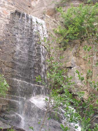 映瑞池,原名三溪池,为云梦山水帘、青龙、龙背三溪汇流处,在云梦山狭谷东段垭口,鬼谷先生当年常携弟子来此习武,历代墨士骚客进水帘洞游览都过此,有迎霞聚瑞之涵,故易名映瑞池,池水清澈,碧波荡漾,朝映霞辉,暮衔星月,水色天光,鱼儿嬉戏,美不胜收,池中有一井,名曰:“鬼谷井”,为缅怀鬼谷而名每年夏秋,池水从坝顶溢出,形成飞瀑,蔚为壮观。 映瑞门临映瑞池,因池得名。映瑞门为城堡式建筑,正门为石砌圆拱形,拱上平台,建有正背歇山重檐回廊小楼,雕饰彩绘,小巧玲珑,登上斯楼,眺望水帘亿鬼谷,送夕阳迎素月,乃游者之快事。 三、水帘洞