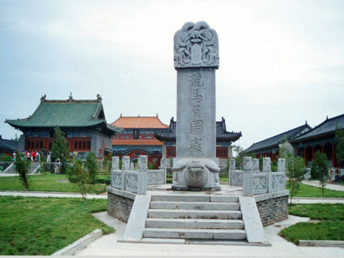 龙马负图寺位于孟津县会盟镇雷河村,是中华人文始祖伏羲氏的祭祀地,也是河洛文化中“河图”的发现地。该寺因有龙马 始建于晋怀帝四年,是为感念“人文之祖”伏羲的功绩,在图河故道上建起的第一座祭礼场所。初名“浮图寺”,永嘉时改为“河图寺”,梁武帝改称“龙马寺”,唐高宗麟德四年更名为“兴国寺”,明嘉靖四十二年仍