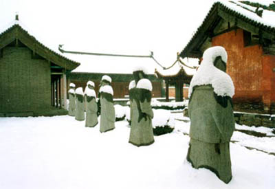 位于石窟南端,是龙门石窟中规模最大的露天佛龛,也是唐代雕塑艺术中的代表作。奉先寺东西深约40米,南北宽约36米,卢舍那佛(披身佛)左侧的《大卢舍那像龛记》记载:大唐高宗天皇大帝之所建也,佛身通光,高85尺,二菩萨高70尺,迦叶、阿难金刚神王各高50尺。主尊像为结跏趺坐中央的卢舍那佛,全像通高17.14米,其中头部高4米,两耳为1.9米高,为龙门石窟最大的佛雕。其面容丰腴典雅、双目含情,稍向下俯视,目光恰好和礼佛朝拜者的仰视目光交汇,可引起人们感情上的振颤。由此可见设计者的匠心和艺术魅力所在。主佛两旁的弟子,迦叶严谨持重,阿难温顺虔诚,菩萨端庄矜持,天王蹙眉怒目,力士威武刚健,真可谓出神入化,巧夺天工。据造像铭记载,武则天为建此寺曾“助脂粉钱两万贯”,并亲率朝臣参加卢舍那佛的“开光”仪式。在伊水页码:[1] [2] [3] [4] [5] [6] 第1页、共6页